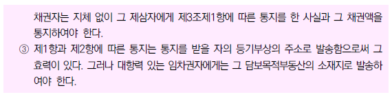 ② 통지이유:후순위권리자가 대위변제에 의하여 자기의 권리를 보전하거나 청산금에 대한 권리행사(제5조) 또는 경매청구권의 행사(제12조 제2항) 등을 할 수 있도록 하기 위함이다.